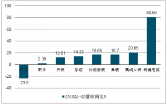 服裝家紡業子行業2018Q1-Q3營收增速(%)