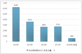 2016年我國電視攝像管進口總量2661只,2017年進口總量2715只;2018年1季度進口總量600只。
