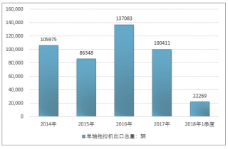 2016年我國單軸拖拉機出口總量137083輛 ,2017年出口總量100411輛 ;2019年1季度出口總量22269輛 。