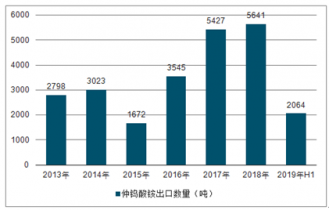 2013-2019H1中國仲鎢酸銨出口數量趨勢圖