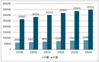 2019-2024年鼓風機行業會員單位鼓風機產量及產值預測