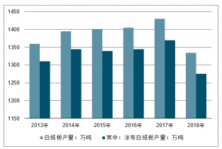 2013-2018年我國白紙板及涂布白紙板產量情況