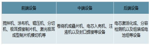 鋰電設備前中后端分類