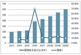 2013-2020年我國鋰電設備行業專利申請及增長預測