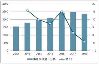 2012-2018年中國乘用車銷量及增長走勢