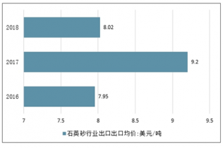 2016-2018年中國石英砂(HS: 25051000 硅砂及石英砂)行業(yè)出口均價分析