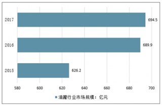 2017年我國油罐行業市場規模694.5億元,同比2016年的689.9億元僅增長0.67%,行業發展進入停滯。