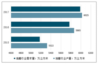 2017年,我國油罐行業產量約6025萬立方米,同比2016年的5865萬立方米增長了2.73%。 2017年我國油罐行業消費量5985.6萬立方米,同比2016年的5770.6萬立方米增長了3.73%。