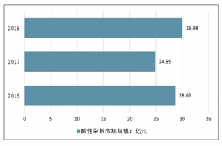 2019年我國酸性染料行業市場規模29.98億元,同比2017年的24.85億元增長了20.64%。