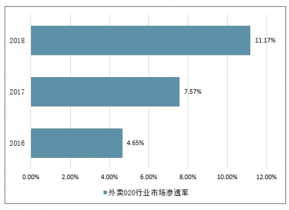 2016-2018年中國外賣O2O行業市場滲透率分析