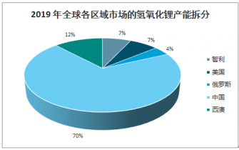 2019年全球各區域市場的氫氧化鋰產能拆分