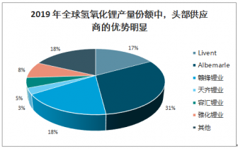 2019年全球氫氧化鋰產量份額中,頭部供應商的優勢明顯