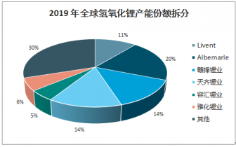 2019年全球氫氧化鋰產能份額拆分