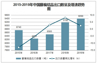 2015-2019年中國藤編結品出口數量及增速趨勢圖