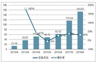 隨著以京東方、深天馬、TCL為首的平板顯示企業大規模新建和改造平板顯示面板及模組生產線,國內對平板顯示器件生產設備的投資不斷加大,平板顯示器件生產設備市場需求快速增長。2012年我國平板顯示廠商對平板顯示器件生產設備的投資為13.18億美元,2016年快速上升到62.32億美元,2017年達到了116.44億美元,預計到2018年國內平板顯示廠商設備投資將達到153.67億美元。