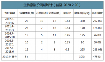 生物素漲價周期統計(截至2020.2.20)