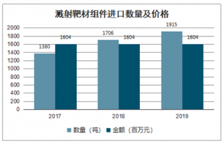 2017年、2018年和2019年,帶背板的濺射靶材組件中國大陸進口量分別為1,380噸、1,706噸和1,915噸,呈現增加的趨勢。進口單噸價格分別為116萬元、94萬元和84萬元,價格均呈現下降趨勢,但進口價格總體仍高于出口。