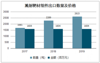 出口價格整體低于進口。2017年、2018年和2019年,帶背板的濺射靶材組件中國大陸出口量分別為1,681噸、2,289噸和2,615噸,出口數量均呈現增加的趨勢。