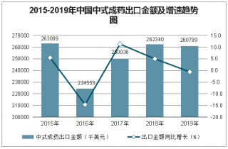 2015-2019年中國中式成藥出口金額及增速趨勢圖