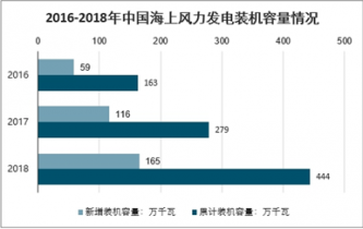 2018年我國海上風電新增裝機436臺,新增裝機容量達到165萬千瓦,同比增長42.7%;累計裝機達到444萬千瓦。