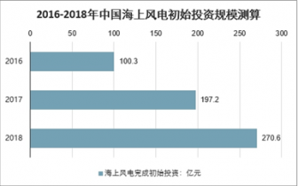 以海上風電16~18元/W的平均初始投資估算,近幾年我國海上風電完成初始投資迅速增長,2014年約為41.4億元,2018年已經增長至270.6億元。