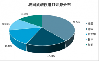 我國質譜儀長期依賴進口,2018年質譜儀進口量為12426臺,同比2017年的10255臺增長21.14%。我國質譜儀主要從美國、德國、新加坡、日本等國家進口,其中從美國進口數量為 4853 臺,占我國質譜儀進口數量的 39.06%。
