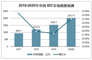 2019-2020年中國 IDC市場規模預測