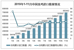 2019年1-11月中國凍雞進口數量為693443噸,同比增長51.4%