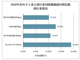 2019年在41個工業大類行業利潤增速超過兩位數的行業情況