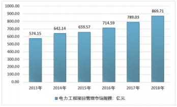 2017年我國電力工程項目管理市場規模為789.03億元,2018年我國電力工程項目管理市場規模增長至869.71億元。