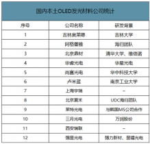 目前大陸從事OLED發光材料的公司主要分為四類:(1)由中間體起家,往下游延伸到OLED發光材料,如萬潤股份、西安瑞聯、上海宇瑞等,這類公司在生產工藝相對成熟;(2)背靠高校的研發型公司,如吉林奧雷德、尚賽光電、盧米藍、深圳智材等,這類公司一般在專利布局、新材料研發有一定優勢;(3)OLED面板廠旗下配套的材料公司,如華睿光電和北京鼎材,這類公司在下游面板廠方面容易獲得支持;(4)擁有相關經驗的海歸團隊創業公司,如北京夏禾(公司創始人是前UDC研發總監)、阿格蕾雅等。