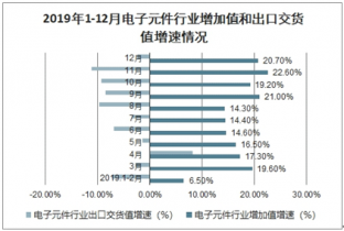 2019年1-12月電子元件行業增加值和出口交貨值增速情況