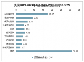 美國2019-2023年項目儲備規模達到90.6GW,主要分布在加利福尼亞州、得克薩斯州、佛羅里達州等地