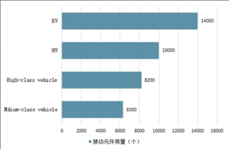 據統計,每輛汽車使用的電子元件來看,中端車平均用量6300個,高端車8200個,純電動汽車增加到14000個,這其中有一半是MLCC。因此,以MLCC為代表的被動元件的車用需求將隨著電動汽車滲透率提升。
