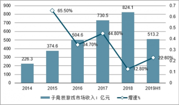 2014-2018年中國電子競技游戲市場收入逐年增長,2018年中國電子競技游戲市場實現收入824.1億元,同比增長12.8%。2019年上半年,中國電子競技游戲市場收入達到513.2億元,同比增長22.8%。