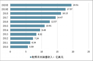 2010-2020年全球射頻開關銷售收入走勢