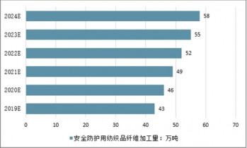 據預計,未來一段時間中國安全防護用紡織品纖維加工量還會繼續上升,預計在2024年達到58萬噸。