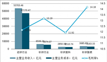 2018年中國針織行業主營業務收入、主營業務成本及毛利率情況