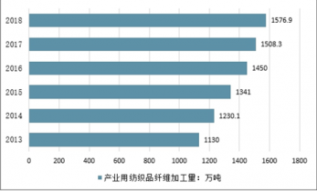 2013-2018年,中國產業用紡織品纖維加工量達到1576.9萬噸,較上年增加4.6%,交通工具、醫療衛生、建筑等領域增長速度較快。
