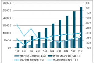 2019年1-10月中國鹵鎢燈累計進出口金額及增速趨勢圖