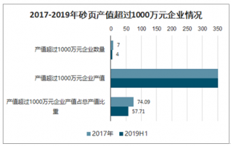 2019年上半年,砂頁產量超過1000萬平方米的達5家,合計產量達到8416.70萬平方米,占砂頁全部統計產量的71.25%。砂頁產值超過10000萬元的4家,合計產值達到46495.07萬元,占砂頁全部統計產值的57.71%。