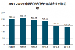 從2015年之后,我國紙和紙板容器制造業的利潤總額呈下降趨勢。2019年,我國紙和紙板容器制造業規模以上企業實現利潤總額138.91億元,同比下降4.95%,為近年來最大降幅。