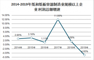2014-2019年紙和紙板容器制造業規模以上企業利潤總額增速