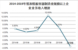 2014-2019年紙和紙板容器制造業規模以上企業業務收入增速
