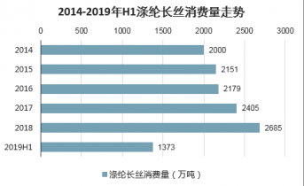 2014-2019年H1滌綸長絲消費量走勢