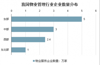從區域結構來看,我國東部地區物業服務企業數量相對高于中部、西部及東北部。我國東部、中部、西部及東北部物業服務企業數量分別約為5萬家、3萬家、2.4萬家和1萬家,分別占全國物業服務業總體數量的45%、26%、23%和6%。
