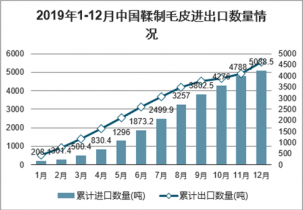 2019年1-12月中國鞣制毛皮進口數量為5088.5噸,同比增長40.3%,出口數量為4614.3噸,同比增長0.9%。