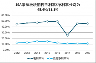 19A家紡板塊銷售毛利率/凈利率分別為45.4%/11.1%