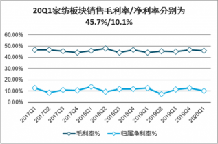 20Q1家紡板塊銷售毛利率/凈利率分別為45.7%/10.1%